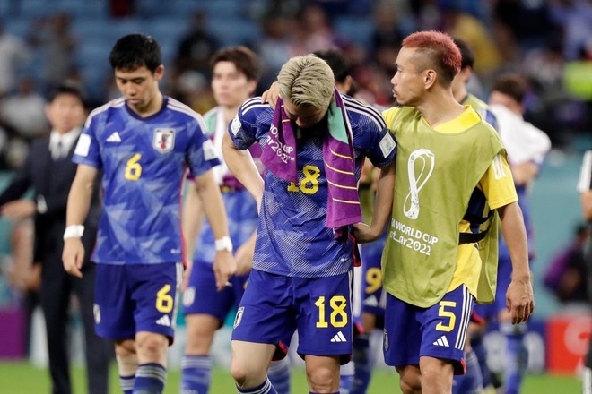 HLV Moriyasu đã cúi đầu chào các CĐV, còn cầu thủ Nhật Bản khóc nức nở rời World Cup 2022, sau trận thua Brazil 1-4 đêm qua.