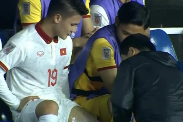 Ít phút sau đó, các CĐV nhanh chóng nhận thấy hình ảnh Quang Hải cần sự chăm sóc của bộ phận y tế trong cabin với một túi đá chườm quanh đùi. Điều đó cho thấy tiền vệ này gặp phải chấn thương không hề đơn giản.
