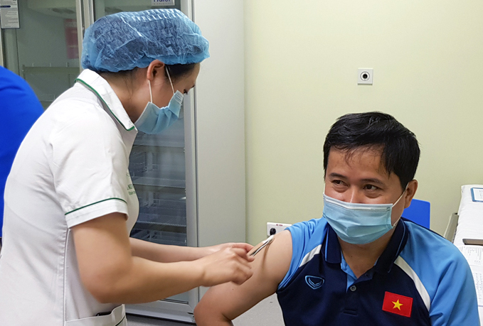Nhằm chuẩn bị cho những trận đấu quan trọng ở bảng G vòng loại World Cup 2022 tại UAE vào đầu tháng 6 tới đây, sáng 5-4, tại Bệnh viện Trung ương Quân đội 108 (TP Hà Nội), những thành viên đầu tiên của đội tuyển bóng đá quốc gia Việt Nam gồm Ban lãnh đạo đội tuyển, HLV trưởng Park Hang-seo cùng các trợ lý, đội ngũ bác sĩ và các cán bộ chuyên môn, cán bộ phục vụ đội tuyển đã được tiêm vắc-xin Covid-19. Đây là sự ưu tiên của Chính phủ đối với thành viên các đội tuyển thể thao quốc gia chuẩn bị làm nhiệm vụ quốc tế trong năm nay.