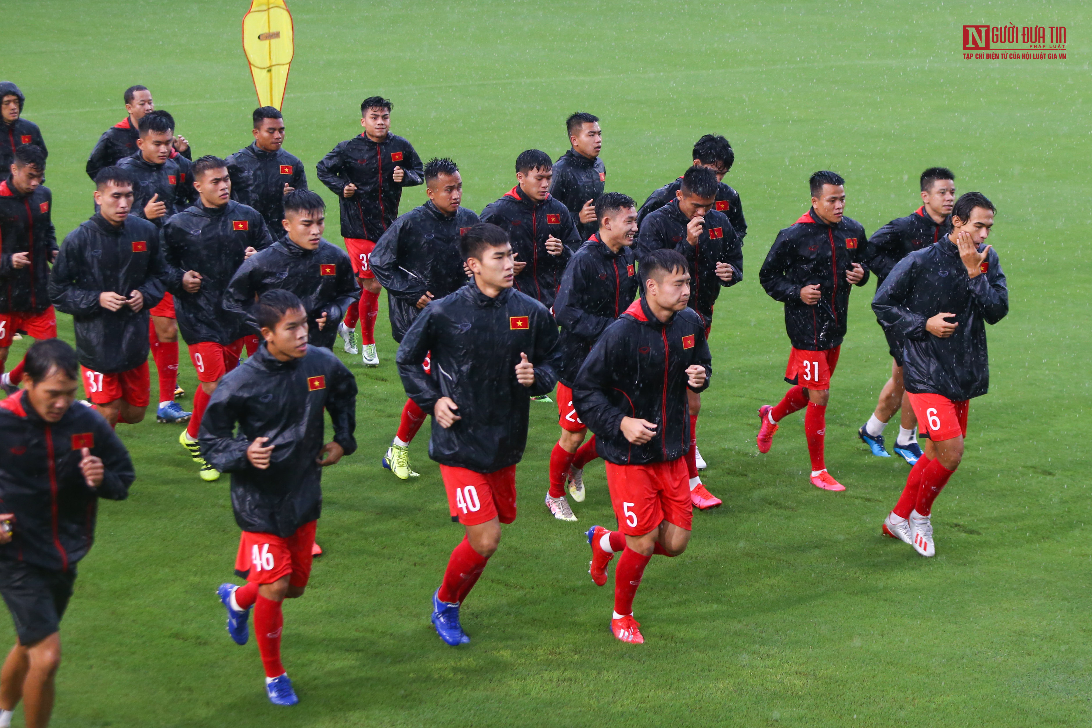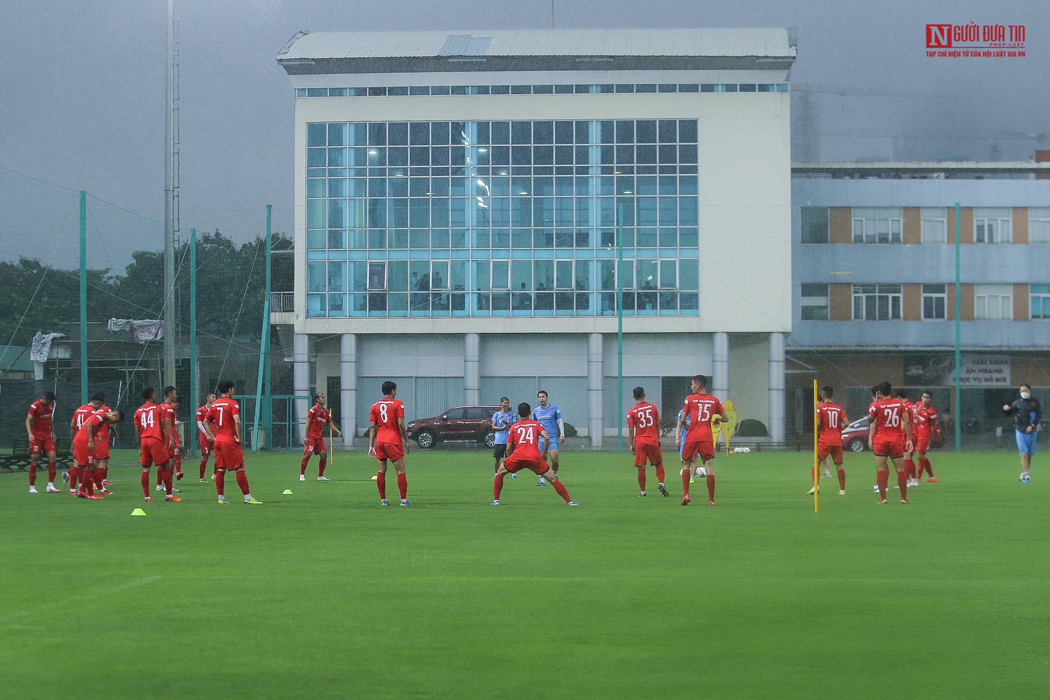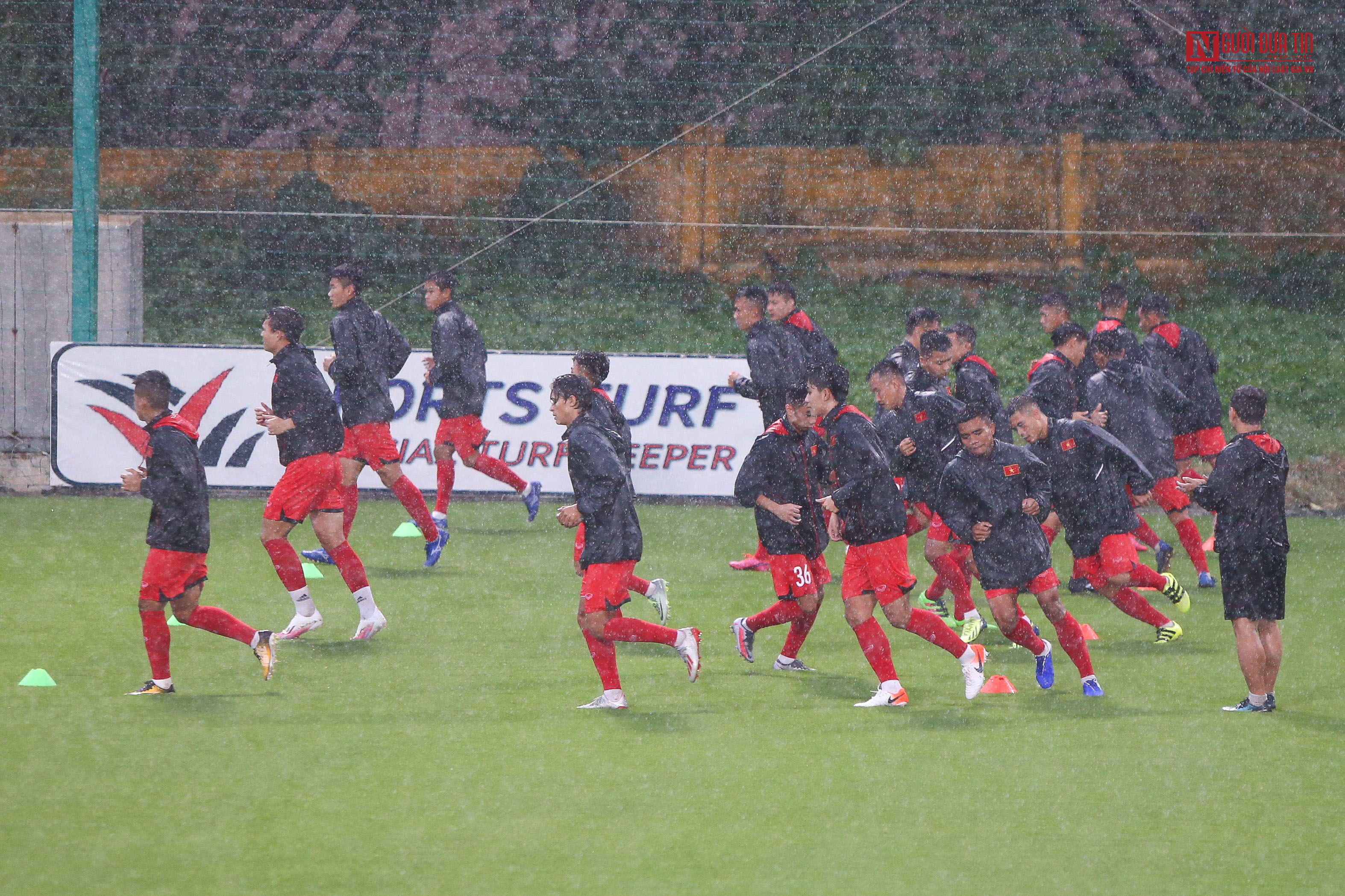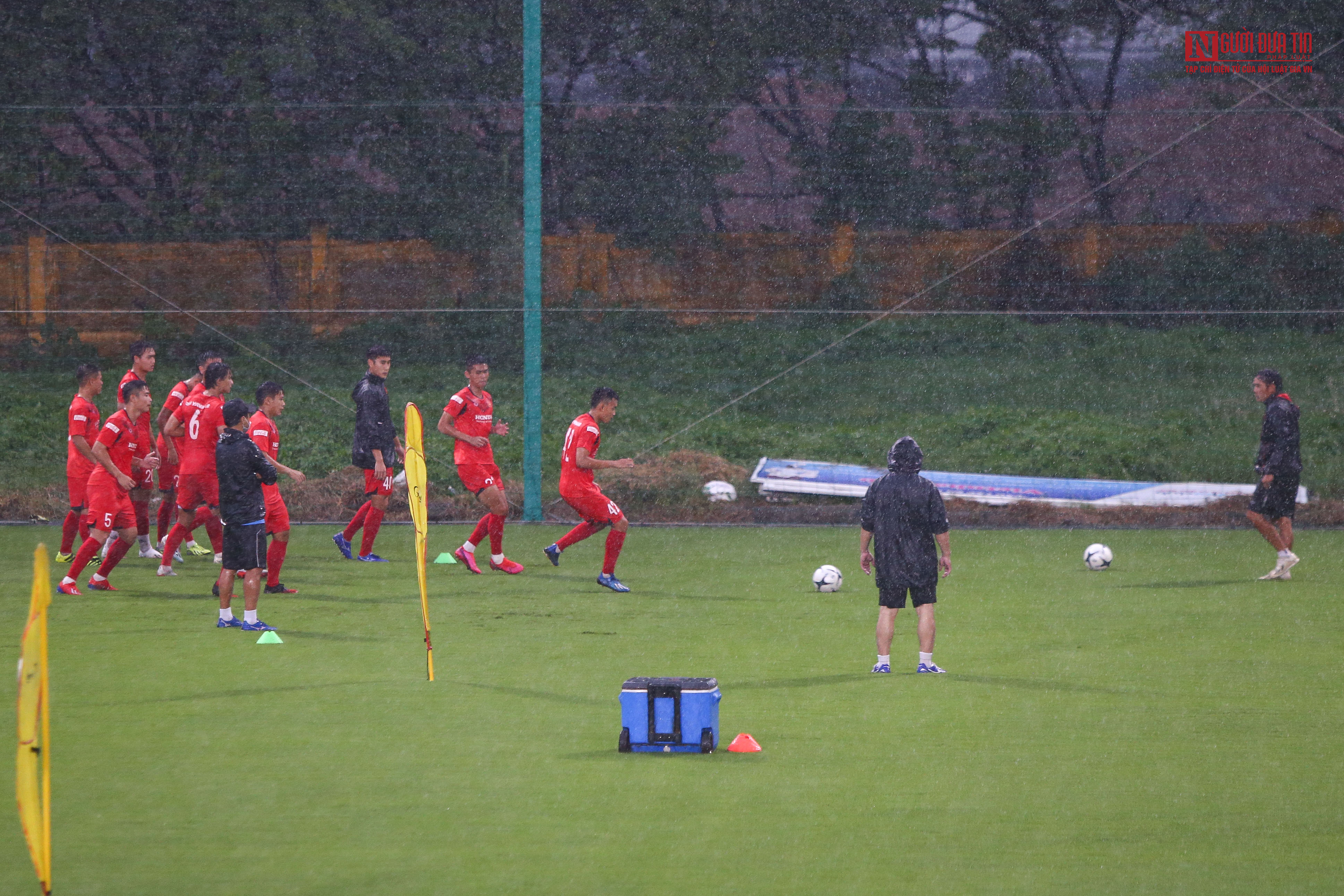 Ở ngay buổi tập đầu thầy trò HLV Park Hang Seo đã gặp bất lợi khi trời Hà Nội mưa khá nặng hạt.