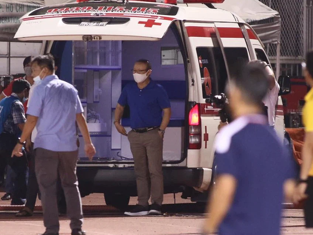 Nhà cầm quân người Hàn đã đến tận chiếc xe cấp cứu để động viên cậu học trò của mình. Nhìn khuôn mặt, ông Park tỏ ra rất thất vọng. Đây cũng là điều dễ hiểu bởi, Đỗ Hùng Dũng là một trong những tiền vệ hàng đầu của ĐT Việt Nam trong những năm qua.