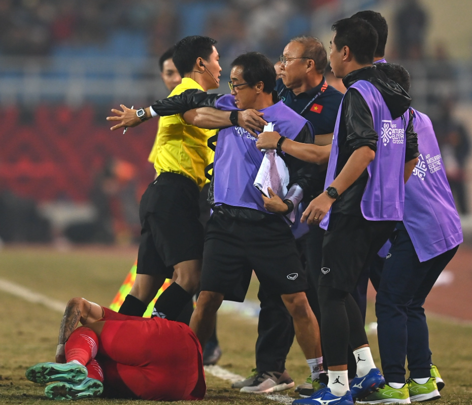 Phút 34, Asnawi có pha "bỏ bóng đá người" với Văn Hậu, khiến hậu vệ tuyển Việt Nam nằm sân đau đớn. HLV Park tức giận, lao ra sát đường biên và định “ăn thua” với cầu thủ Indonesia. Hai đội cũng lao vào tranh cãi, buộc trọng tài rút thẻ đỏ cảnh cáo Asnawi để hạ nhiệt.