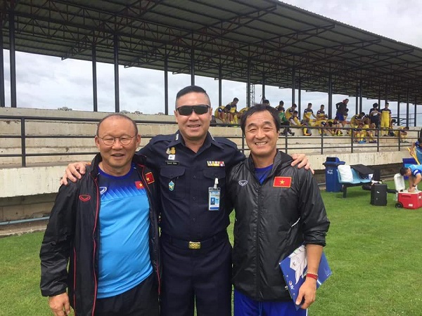 Thầy Park sau những giây phút ngỡ ngàng, đã nhận ra người đồng đội cũ nên vui vẻ ra chào đón. Viên sĩ quan đó là Piyapong Pue-on - cựu tuyển thủ Thái Lan và là đồng đội của HLV Park Hang-seo trong giai đoạn 1984-1986 ở CLB Hàn Quốc Lucky-Goldstar FC (bây giờ có tên là FC Seoul). Piyapong Pue-on từng 100 lần khoác áo đội tuyển Thái Lan và ghi 70 bàn. Ông giải nghệ năm 38 tuổi sau đó làm quản lý một số CLB ở Thái Lan.
