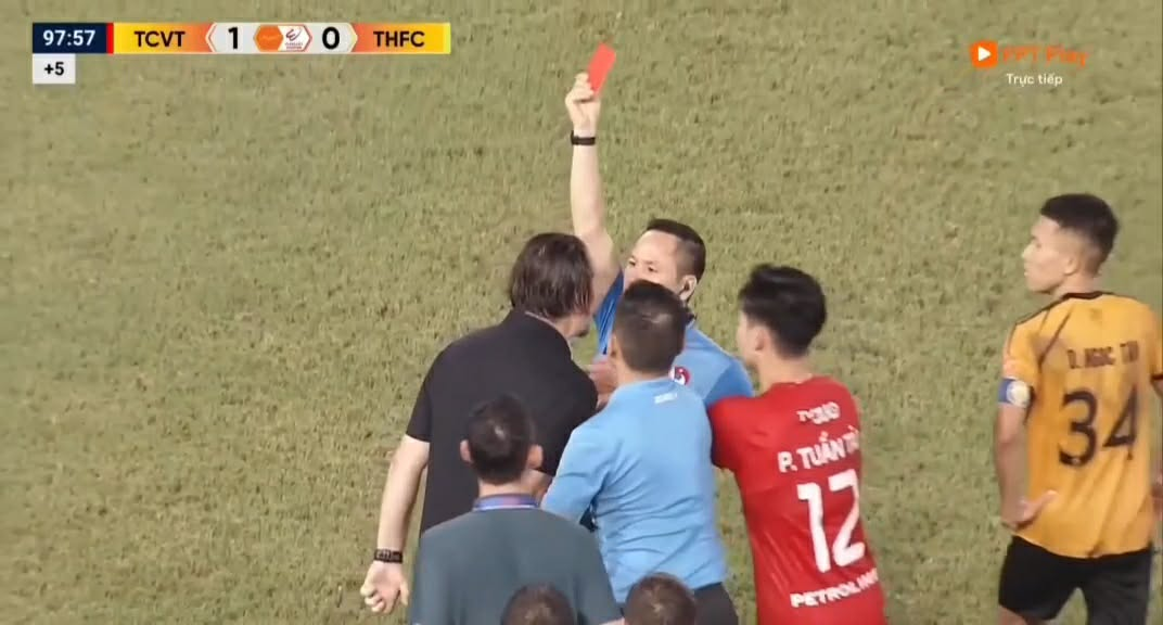 Sự việc càng trở nên tồi tệ khi ông Popov nhận thẻ vàng từ trọng tài nhưng vẫn không giữ được bình tĩnh. Chỉ trong vòng 3 giây ngắn ngủi, một thẻ vàng thứ hai được rút ra đồng nghĩa với một thẻ đỏ trực tiếp dành cho HLV trưởng Thể Công. Trong cơn giận dữ tột độ, ông đã tháo thẻ tác nghiệp, ném đi ngay trên sân.