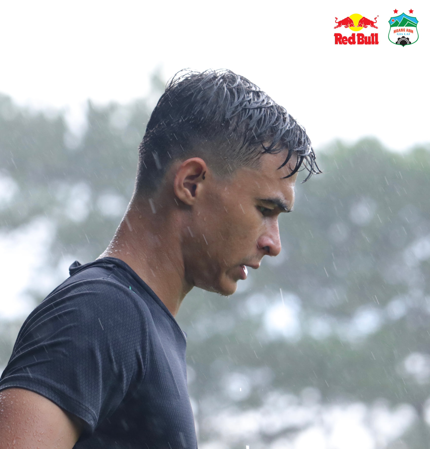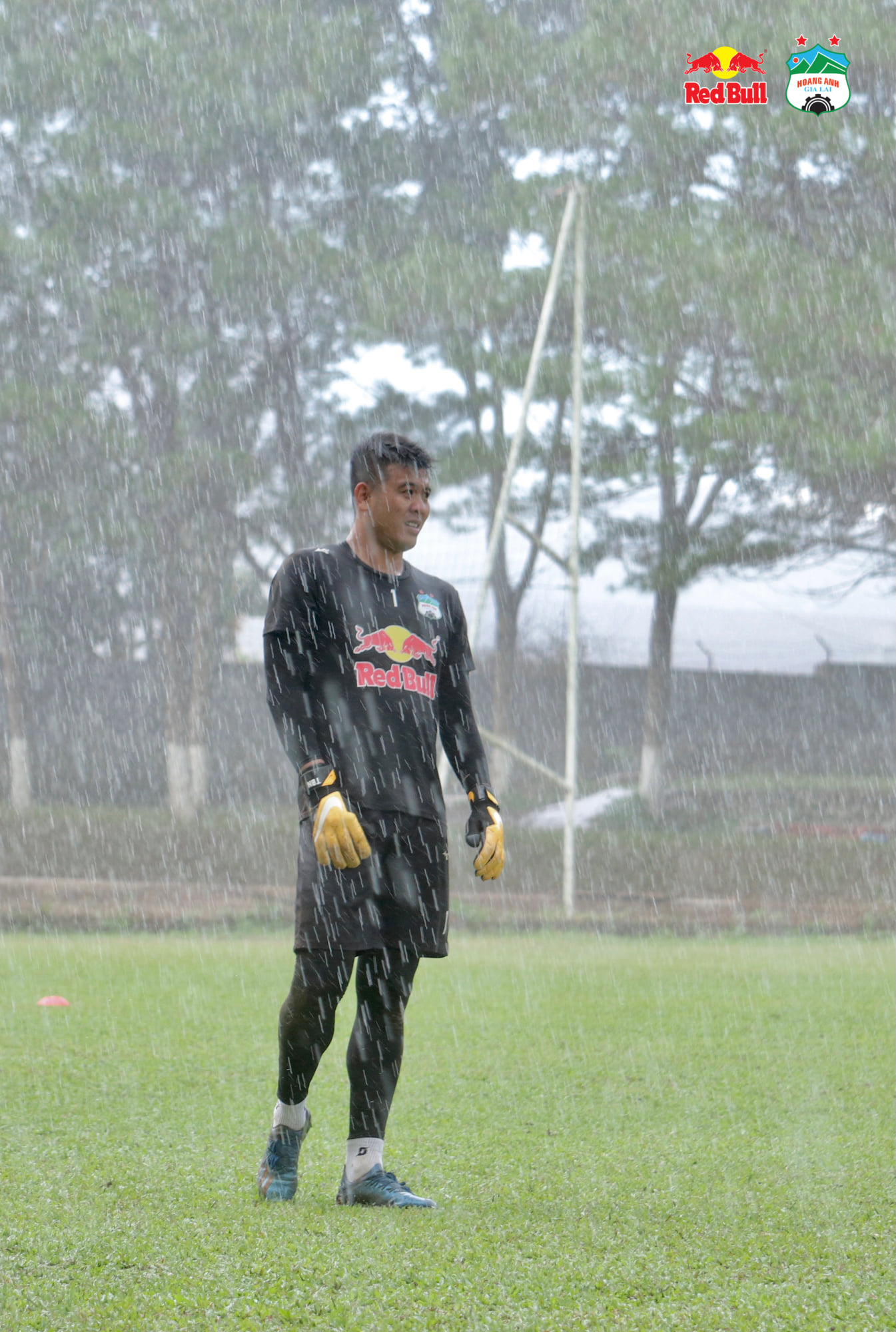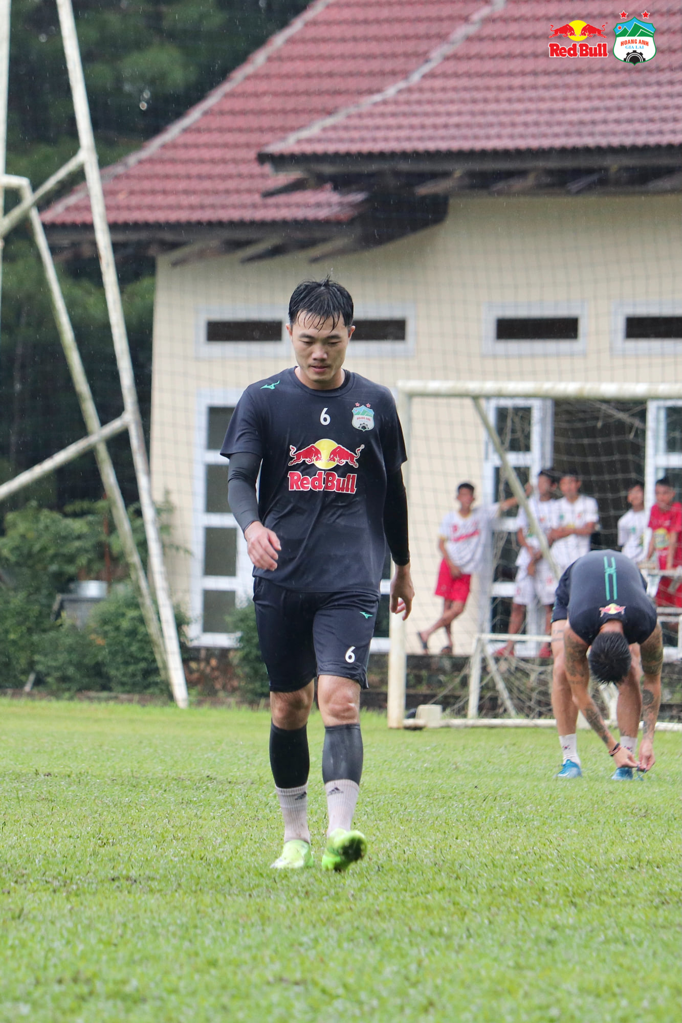 CLB Hoàng Anh Gia Lai chia đội thi đấu nội bộ giữa trời mưa lớn, Công Phượng dẫn đầu nhóm áo bib giành chiến thắng với tỉ số 4-2.