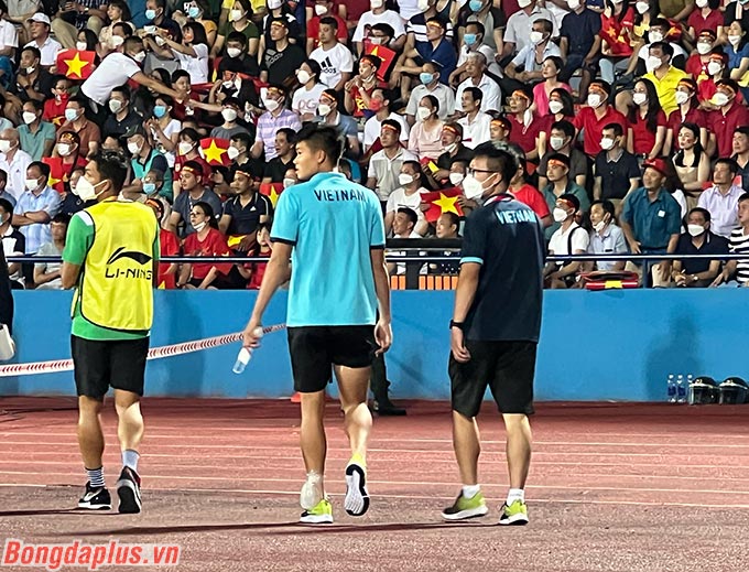 Tuy nhiên, đây không phải là lý do mà HLV Park Hang Seo rút Văn Tùng khỏi sân. Theo dõi trực tiếp ngoài đường biên ở sân Việt Trì, Phú Thọ, phóng viên Bongdaplus bắt gặp hình ảnh Văn Tùng đi cà nhắc cùng một trợ lý U23 Việt Nam. Vùng mu bàn chân trái và bắp đùi phải của Văn Tùng đều phải chườm đá.