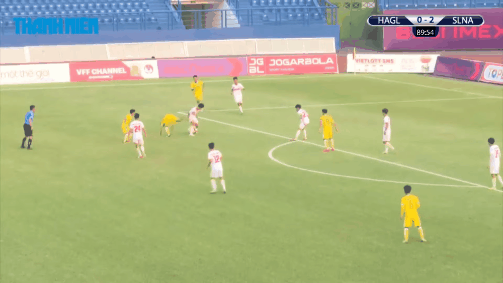 Những phút cuối, đội bóng xứ Nghệ ấn định chiến thắng 3-0 với màn đập nhả cực nhanh trong vòng cấm đối phương.