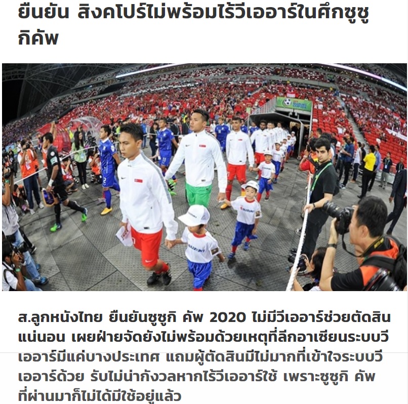 Nếu muốn sử dụng VAR, trọng tài cũng là một vấn đề cần phải tính đến. Phải thừa nhận rằng ở Đông Nam Á, không có nhiều trọng tài được tập huấn để sử dụng công nghệ này. Vì thế chủ nhà Singapore quyết định sẽ không dùng VAR ở giải đấu diễn ra vào cuối năm nay".