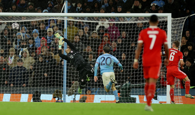 Phút 70, Upamecano mất bóng nguy hiểm trong vòng cấm, Grealish cướp được bóng rồi chuyền cho Haaland băng xuống. Tiền đạo người Na Uy bấm bóng sang bên cánh phải để Bernardo Silva đánh đầu tung lưới Sommer.