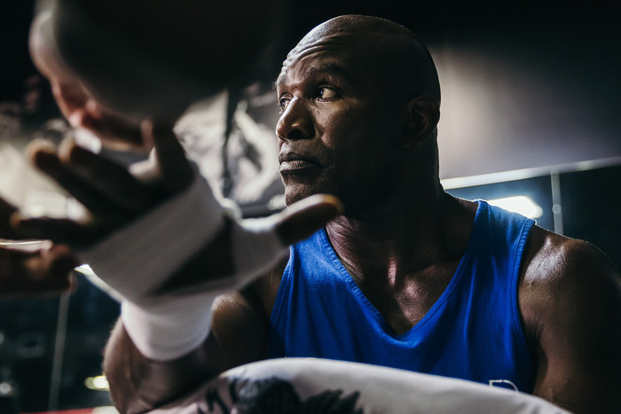 | Evander Holyfield trong buổi tập vào ngày 9/9 |