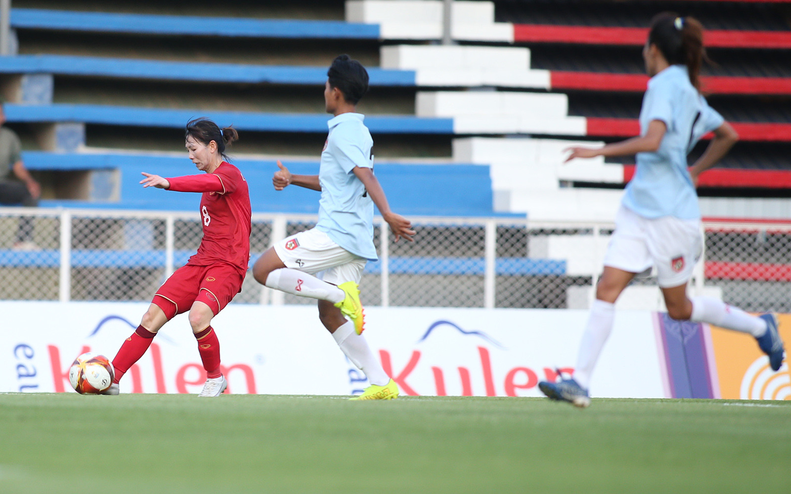 Tiền đạo Huỳnh Như ghi bàn góp công vào chiến thắng của tuyển nữ Việt Nam trước Myanmar, đồng thời làm nên kỷ lục hiếm có ở đấu trường SEA Games.