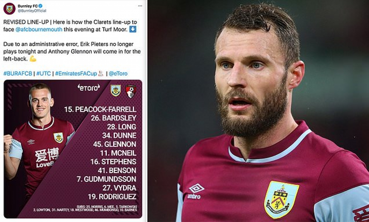 Đội chủ sân Turf Moor quên mất việc Erik Pieters bị treo giò vì đã nhận đủ số thẻ vàng nên vẫn điền tên hậu vệ này vào đội hình xuất phát trong cuộc tiếp đón Bournemouth ở vòng 5 FA Cup.