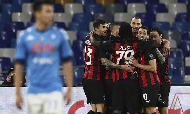 Mải mê dâng cao nhưng không ghi được bàn, Napoli trả giá ở đầu hiệp hai. Rebic căng ngang cho Ibrahimovic đệm bóng ghi bàn thứ hai ở một pha phản công. 10 phút sau, hy vọng giành điểm của đội chủ nhà được nhen nhóm. Mario Rui căng ngang cho Mertens ghi bàn trong tình huống Alessio Romagnoli phá bóng không tốt.