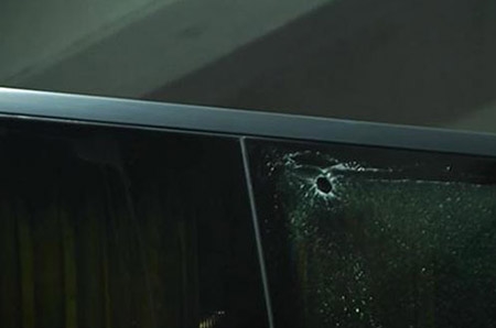 | Trái banh golf đã làm bể kính xe buýt ngay bên trên chỗ ngồi của Ibrahimovic - Ảnh: Canal |