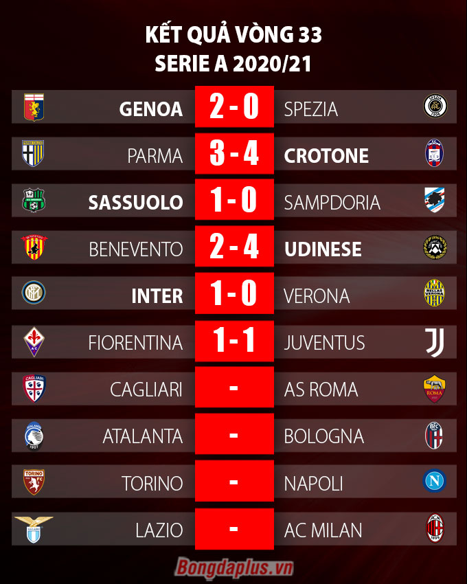 1-0 cho Inter là kết quả cuối cùng của trận này. Thắng trận, Inter tiến thêm một bước tới chức vô địch Serie A 2020/21 khi có 79 điểm. Họ hơn đội nhì bảng AC Milan 13 điểm nhưng thi đấu hơn 1 trận.