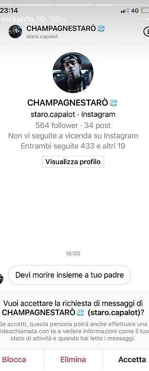 "Mày và bố mày phải chết", là nội dung của một trong hàng loạt tin nhắn đe doạ mà Niccolo Pirlo phải nhận mỗi ngày.