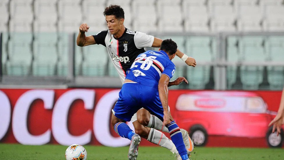Cầu thủ Juventus tỏ ra hài lòng với tỷ số 2-0, còn Ronaldo thì không. Khi Sampdoria đang thi đấu với chín người vì Ramirez ra ngoài băng lại đầu chảy máu, Ronaldo đẩy nhanh tốc độ. Anh chọc khe cho Alex Sandro đột phá vào cấm địa, buộc Depaoli phải phạm lỗi. Từ chấm 11m, Ronaldo sút căng bằng mu bàn chân, đưa bóng dội trúng xà ngang bật ra ngoài. Anh lần đầu sút hỏng phạt đền ở Serie A mùa này, sau 12 cú sút thành công liên tiếp.