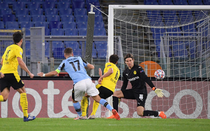 Bellingham có thể đã đá tốt ở Bundesliga nhưng phút thứ 6, anh vẫn cho thấy sự non kinh nghiệm. Cựu binh Lucas Leiva áp sát Bellingham giúp Lazio lấy được bóng và Joaquin Correa mớm cho Immobile trong khu cấm địa Dortmund. Tiền đạo người Italia đã dễ dàng ghi bàn mở tỷ số vào lưới đội bóng cũ.