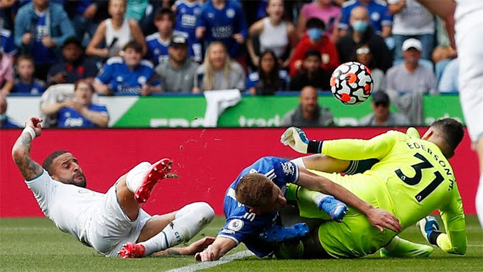 Ngay ở phút thứ 6, lưới của Leicester suýt nữa đã rung lên sau tính huống Bernardo Silva đi bóng lắt léo bên cánh trái và tạt vào trong cho Jesus đánh đầu. May cho Leicester là thủ môn Schmeichel của họ đã xuất sắc cản phá được cú dứt điểm của chân sút người Brazil.