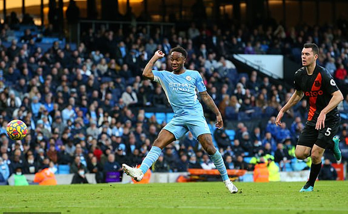 Thế nhưng, NHM Man City cũng không phải thất vọng quá lâu, bởi ở những phút cuối của hiệp 1, hậu vệ Joao Cancelo thực hiện cú vẩy má ngoài đẳng cấp xé toang hàng thủ Everton để Sterling phá bẫy việt vị và xâm nhập vòng cấm trước khi dứt điểm khéo léo đánh bại thủ thành Pickford giúp Man City có lợi thế dẫn bàn trước khi bước vào giờ nghỉ.