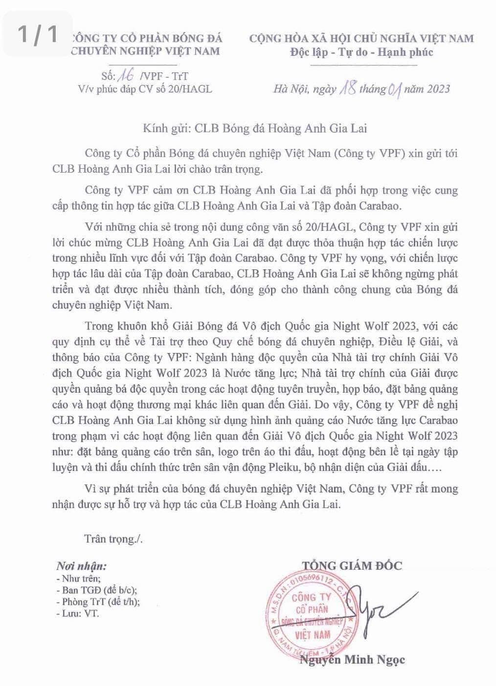Nhận công văn, bầu Đức phản ứng mạnh, đồng thời tuyên bố sẽ giải tán đội bóng HAGL, không tham dự V-League 2023 với lý do VPF "có động cơ cá nhân hơn vì cái chung".