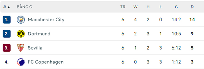Với kết quả này, Man City nhất bảng G với 14 điểm sau 6 lượt trận và cùng Dortmund - CLB để hòa 1-1 Copehaghen ở trận đấu cùng giờ - đi tiếp vào vòng 1/8 Champions League. Còn Sevilla sẽ xuống chơi ở vòng play-off của Europa League.