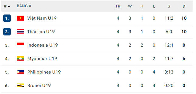 Trước lượt trận cuối cùng của vòng bảng giải vô địch U19 Đông Nam Á, cục diện bảng A trở nên cực kỳ căng thẳng và khó lường. U19 Việt Nam và U19 Thái Lan đang tạm thời dẫn đầu với 10 điểm, nhưng hai đội bóng này phải đối đầu trực tiếp với nhau. Trong khi đó, U19 Indonesia tạm thời đứng thứ 3 với 8 điểm nhưng chỉ phải gặp U19 Myanmar, đội đã chắc chắn bị loại.