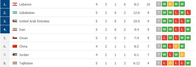 Cũng cần phải lưu ý thêm, do tuyển Triều Tiên đã rút lui khỏi giải đấu, các trận đấu với đội cuối bảng sẽ không được xét. Do đó, trong trường hợp xấu nhất khi các đội nhì bảng trong BXH đều giành được số điểm tối đa ở những trận còn lại, còn Việt Nam thua cả 2 trận, chỉ có 11 điểm thì "Những ngôi sao vàng" sẽ bị loại do chỉ đứng thứ 6.