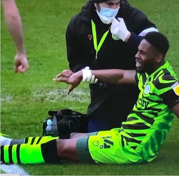 Cú va chạm khiến tiền đạo người Jamaica chấn thương nghiêm trọng ở bàn tay phải. Matt tỏ ra vô cùng đau đớn trước khi gục xuống sân đấu.
