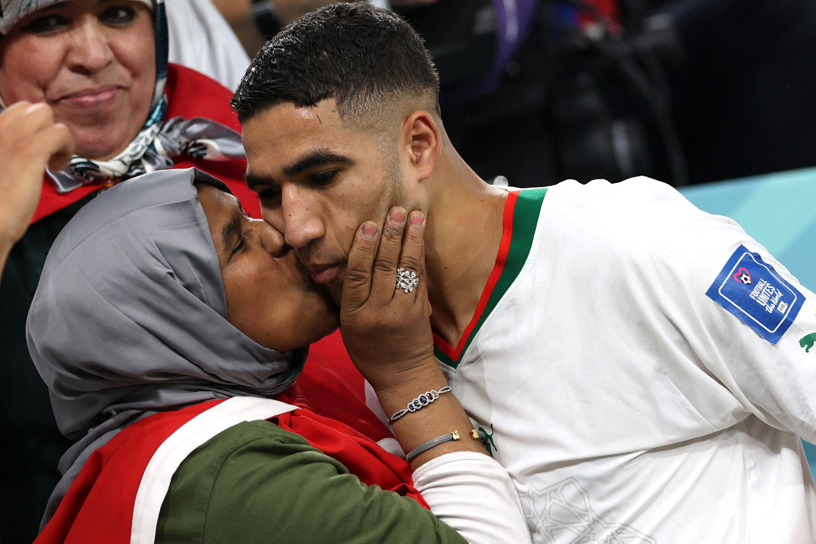 Một trong những hình ảnh gây xúc động nhất là khoảnh khắc Hakimi rời xa các đồng đội trong lễ ăn mừng, tiến lên khán đài, tiến lại gần người phụ nữ nhỏ nhắn với chiếc khăn trùm đầu sinh ra trên cánh đồng Maroc và trao cho cô ấy nụ hôn. Đối với bà, đó là cả thế giới.