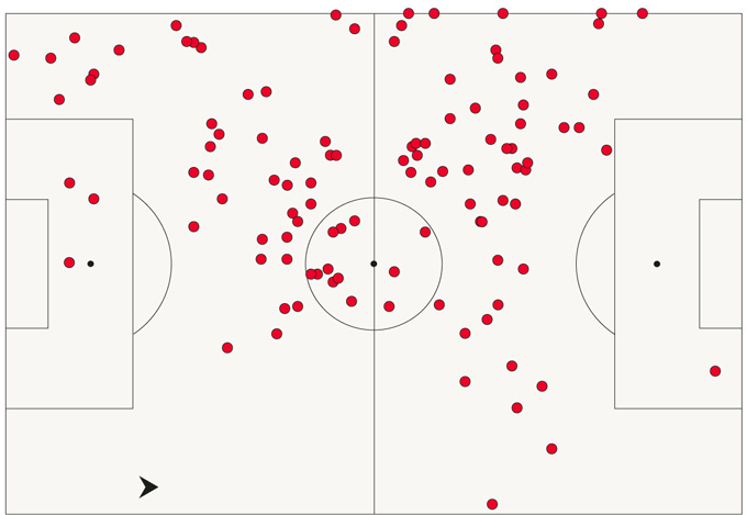 Màn trình diễn trước Everton chính xác đã lột tả những gì hay nhất của Zinchenko. Khi đối phương có bóng, anh là một hậu vệ trái. Nhưng khi Arsenal nắm thế trận, cựu sao Man City lập tức bó vào trung lộ đá như một tiền vệ trung tâm bên cạnh Jorginho hoặc Thomas Partey. Bản đồ chạm bóng của Zinchenko đã chứng minh tầm ảnh hưởng của Zinchenko khi anh có mặt gần như ở mọi khu vực trên sân. Dĩ nhiên, tuyến giữa là nơi cầu thủ 26 tuổi hiện diện nhiều nhất bởi anh gần như trở thành điểm trung chuyển trong khâu lên bóng của Arsenal.