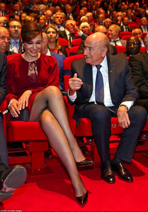 | Chủ tịch Sepp Blatter sóng đôi bên người tình trẻ kém 28 tuổi, Linda Barras. Ảnh: Getty |