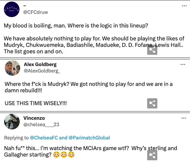 Người thứ ba bình luận nghiệt ngã: “Tôi thà xem Man City đá với Arsenal còn hơn. Gallagher lại đá cặp với Sterling? Cái quái gì vậy?”.