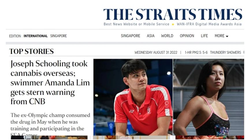 Nhưng Straitstimes còn có tiết lộ động trời hơn. Đó là "Cậu bé vàng" của làng bơi lội Singapore không chỉ vi phạm một mình, mà cùng với nữ kình ngư Amanda Lim. Đáng nói hơn, theo nhật báo này, bộ đôi VĐV đã sử dụng cần sa khi tham dự SEA Games 31 ở Hà Nội.