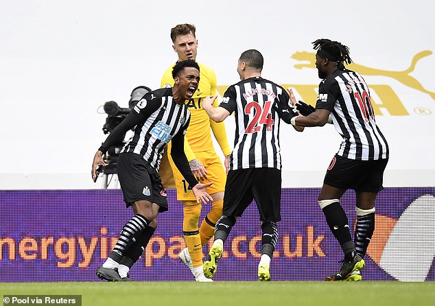Sau những tình huống ăn miếng trả miếng rất hấp dẫn, Newcastle bất ngờ có bàn thắng dẫn trước. Phút 28, Sean Longstaff tận dụng tốt sai lầm của hàng thủ Tottenham rồi tung ra đường chuyền thuận lợi cho Joelinton. Trong vòng cấm, chân sút người Brazil đã đặt lòng chuẩn xác, hạ gục thủ môn Lloris.
