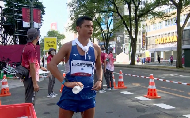 Hôm 7/8, nội dung đi bộ 50km tại Olympic 2020 đã chính thức diễn ra. Tuy nhiên, thời tiết lại không ủng hộ các VĐV khi khá nóng, nắng to với mức nhiệt cao. Thứ hỗ trợ đắc lực cho những tay chạy tham gia cuộc thi chính là những chai nước được ban tổ chức cung cấp.