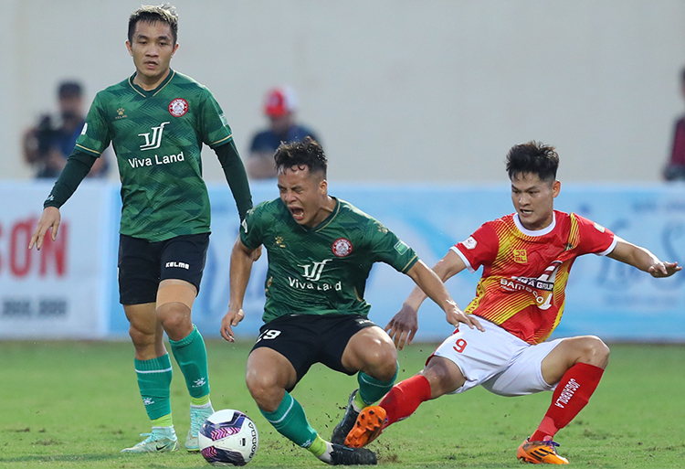 Ở hiệp một, đoàn quân của ông Vũ Tiến Thành đã có thời điểm đẩy đội chủ nhà lùi về 1/3 sân nhà để phòng phòng ngự. Trong thế trận áp đảo ấy, TP.HCM đã tạo được những cơ hội ăn bàn trông thấy.