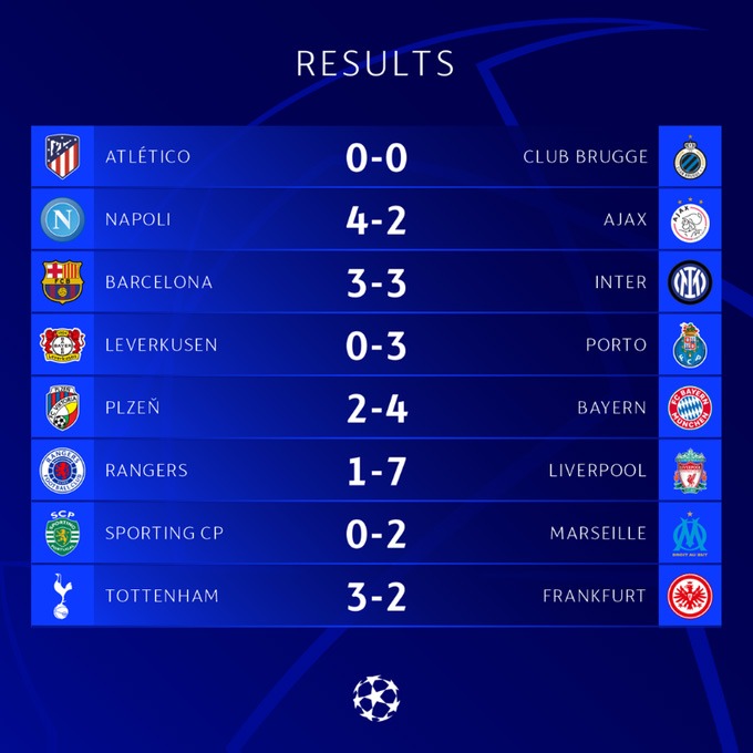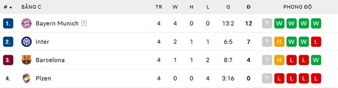 Đây cũng là tỷ số cuối cùng của trận đấu này. Inter có được 7 điểm và vẫn đứng thứ 2 tại bảng C. Trong khi đó, Barca đứng thứ 3 với 4 điểm. Họ sẽ cần có những kết quả tích cực trước Bayern và Plzen ở 2 vòng đấu cuối đồng thời hy vọng Inter sảy chân thì mới lách qua khe cửa hẹp để vào vòng 1/8.