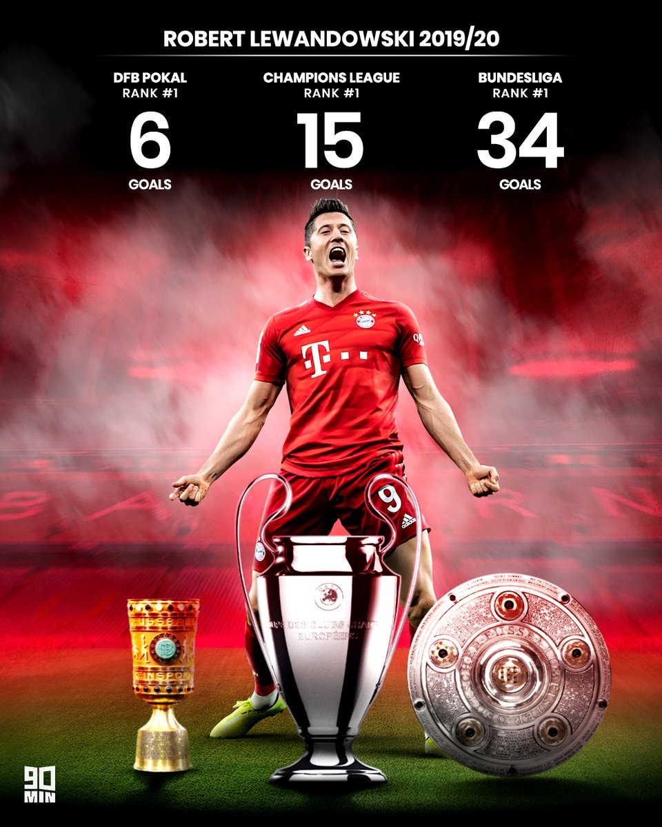 Trong thành quả của đội chủ sân Allianz-Arena, Robert Lewandowski là gương mặt nổi bật nhất, với thành tích là Vua phá lưới ở cả 3 mặt trận. Tại Bundesliga, chân sút người Ba Lan có 34 bàn, ở Champions League có 15 bàn và 6 pha lập công tại Cúp Quốc gia.