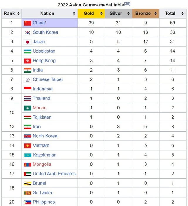 Tính đến hết ngày 25/9, đoàn Thể thao Việt Nam giành được 1 HCB, 5 HCĐ, xếp vị trí thứ 14/45 quốc gia tham dự Asiad 19 tại Hàng Châu (Trung Quốc). Đây chưa phải là vị trí làm hài lòng lãnh đạo đoàn thể thao và người hâm mộ. Nếu giành được HCV, chắc chắn thứ hạng của đoàn Thể thao Việt Nam sẽ được cải thiện rất nhiều.