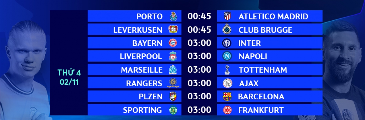 01/11/2022 20:30Lịch thi đấu bóng đá hôm nay 1/11: Đại chiến ở Champions League