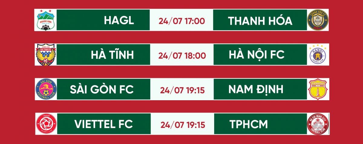 24/07/2022 15:30Lịch thi đấu V-League 2022 hôm nay 24/7: HAGL và Hà Nội FC ra trận