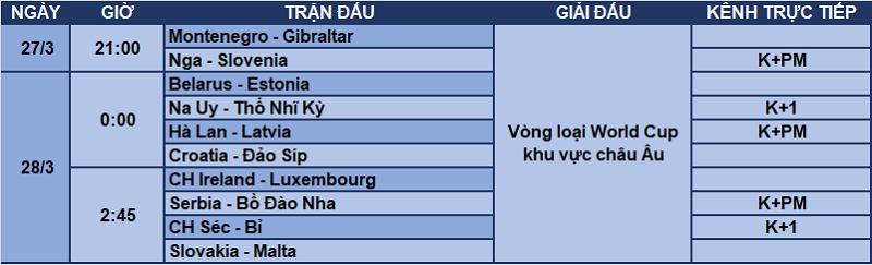 27/03/2021 14:08Lịch thi đấu vòng loại World Cup: Chờ Ronaldo khai hỏa