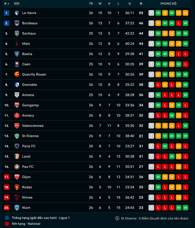06/03/2023 05:30Ligue 2: CLB của Quang Hải chỉ còn hơn nhóm xuống hạng 1 điểm
