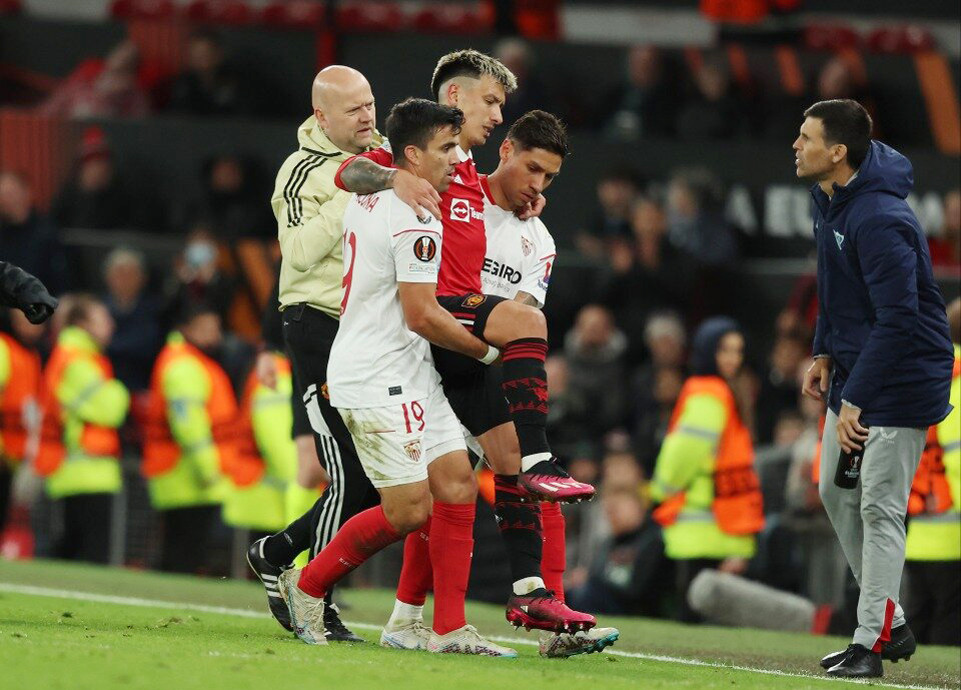Do hết quyền thay người nên kể từ lúc Lisandro Martinez rời sân trên cáng, MU chỉ còn chơi với 10 cầu thủ trên sân.