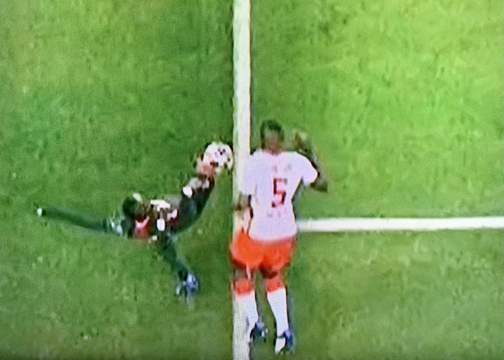Đoạn video quay chậm cho thấy quả bóng ở vị trí rất khó cho trọng tài phân định nhưng nó vẫn còn ở trong sân. Bình luận trên sóng BT Sport, danh thủ Michael Owen cho biết: "Tôi nghĩ Mane vẫn giữ quả bóng trong sân". Ngồi bên cạnh Owen, người dẫn chương trình Gary Lineker nêu luận điểm: "Chúng ta có một góc quay cho thấy quả bóng có thể đã ra ngoài rìa", trước khi lên tiếng khen ngợi: "Trọng tài biên chọn vị trí quan sát rất tốt".