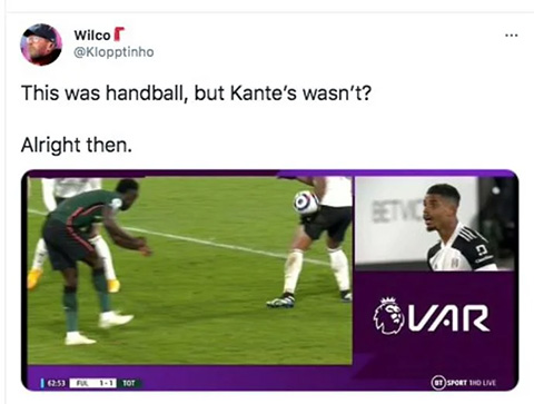 Đặc biệt là các CĐV của Liverpool cũng như... Fulham, họ càng có lý do để nghi ngờ sự công tâm của các trọng tài. Nói thế là bởi, cũng ở một pha bóng tương tự, Mario Lemina của Fulham đã bị thổi phạt một cách gây tranh cãi bởi VAR chỉ vài giờ trước đó trong trận đấu với Tottenham.