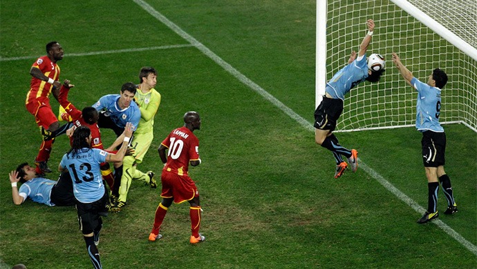 Tất nhiên, Suarez phải nhận thẻ đỏ và Uruguay bị thổi phạt đền. Đây là cơ hội quá tốt để Ghana hạ đại diện đến từ Nam Mỹ. Đáng tiếc là Asamoah Gyan lại sút dội xà ngang và sau đó Ghana gặp bất lợi về tâm lý còn thua tiếp ở loạt đá luân lưu 11m.