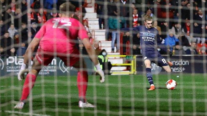 Tới phút 78, bất ngờ nho nhỏ xảy ra khi Harry McKirdy tung cú sút quyết đoán ở góc hẹp rút ngắn tỷ số xuống 1-3 cho Swindon Town. Dẫu vậy chỉ 4 phút sau, Man City đã có bàn ấn định chiến thắng 4-1 chung cuộc nhờ sự tỏa sáng của cầu thủ trẻ Cole Palmer.