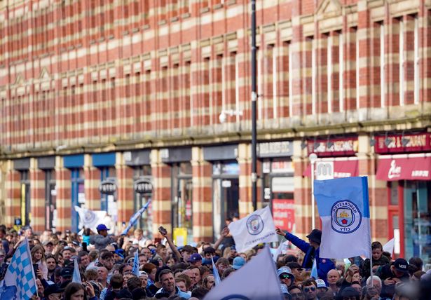 Sau buổi ăn mừng ở CLB, các thành viên của Man City đã tham gia một cuộc diễu hành bắt đầu lúc 6 giờ chiều thứ Hai (23/4, giờ địa phương), bắt đầu tại Quảng trường Exchange, đi qua Cổng St Mary và kết thúc tại Tháp Beetham. Raheem Sterling và Gabriel Jesus là những người vắng mặt duy nhất trong bữa tiệc. Man City cho biết Sterling không có mặt vì lý do cá nhân, trong khi Jesus ở với vợ, người sắp sinh con.